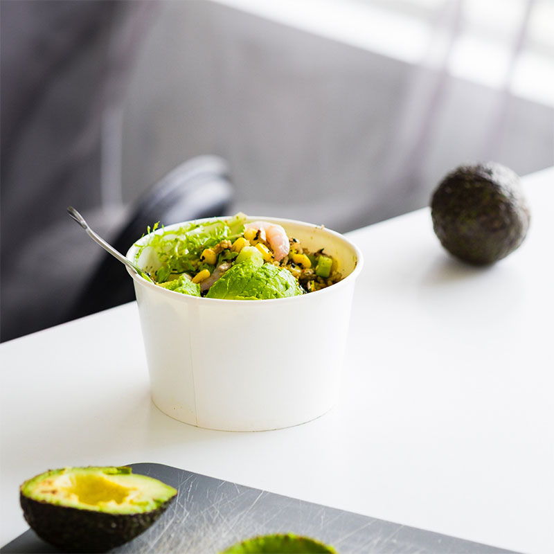 A polievková papierová misa Geometria priamo ovplyvňuje logistiku a skúsenosti koncových používateľov. Kónický stenový profil uľahčuje stohovanie do seba a znižuje prepravný objem. Vystužené valcované okraje zvyšujú pridržiavaciu silu veka a vytvárajú bezpečnú nepriepustnú spojovaciu plochu. Mierne zvýšený krúžok alebo hrubšia vrstva podlahy na základni bráni odstredivému prehĺbeniu, keď kuriér zadáva viacero objednávok na podnos – táto malá zmena znižuje prepichnutie a deformáciu počas prepravy. Pri navrhovaní vysokoteplotných polievok sa vyhnite ultratenkým základom, aj keď sú strany hrubé; dno pojme plnú váhu tekutiny a prísad (rezance, kúsky, polevy).